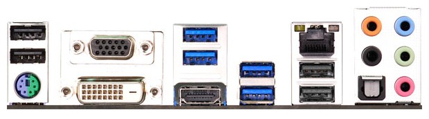 Интерфейсы: 14 USB, из них 6 USB 3.0 (4 на задней панели), выход S/PDIF, 1xCOM, D-Sub, DVI, HDMI, Ethernet