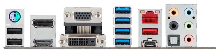 Интерфейсы: 16 USB, из них 6 USB 3.0 (4 на задней панели), 2 USB 3.1 (2 на задней панели), выход S/PDIF, 1xCOM, D-Sub, DVI, HDMI, Ethernet