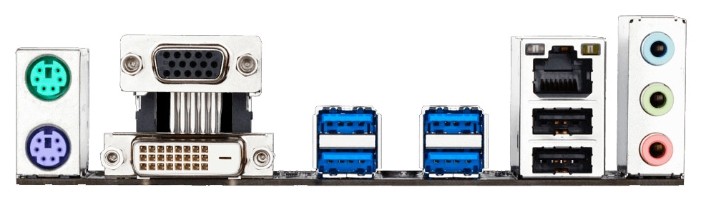 Интерфейсы: 12 USB, из них 6 USB 3.0 (4 на задней панели), выход S/PDIF, 1xCOM, D-Sub, DVI, Ethernet