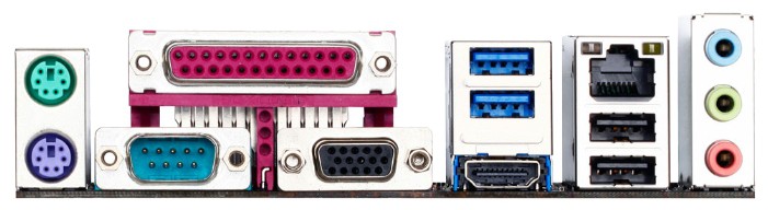 Интерфейсы: 8 USB, из них 2 USB 3.0 (2 на задней панели), выход S/PDIF, 2xCOM, D-Sub, HDMI, Ethernet, LPT