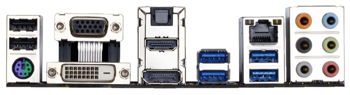 Интерфейсы: 14 USB, из них 6 USB 3.0 (4 на задней панели), выход S/PDIF, 1xCOM, D-Sub, DVI, DisplayPort, HDMI, Ethernet