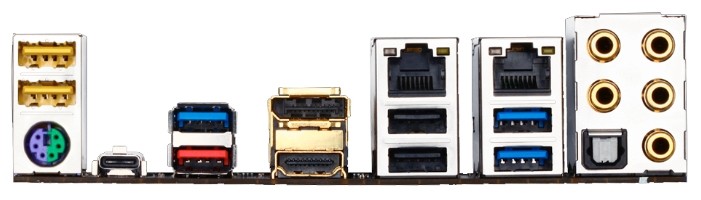 Интерфейсы: 17 USB, из них 7 USB 3.0 (3 на задней панели), 2 USB 3.1 (2 на задней панели), выход S/PDIF, 1xCOM, HDMI, 2xEthernet