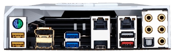 Интерфейсы: 15 USB, из них 9 USB 3.0 (5 на задней панели), 2 USB 3.1 (2 на задней панели), выход S/PDIF, 1xCOM, HDMI, 2xEthernet