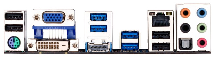 Интерфейсы: 14 USB, из них 4 USB 3.0 (2 на задней панели), выход S/PDIF, 1xCOM, D-Sub, DVI, HDMI, Ethernet