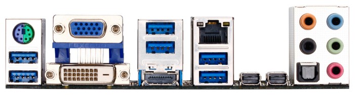 Интерфейсы: 14 USB, из них 8 USB 3.0 (6 на задней панели), выход S/PDIF, вход S/PDIF, 1xCOM, D-Sub, DVI, HDMI, Ethernet