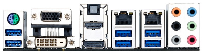 Интерфейсы: 14 USB, из них 10 USB 3.0 (6 на задней панели), выход S/PDIF, вход S/PDIF, 1xCOM, D-Sub, DVI, DisplayPort, HDMI, 2xEthernet