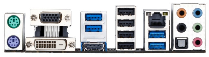 Интерфейсы: 14 USB, из них 6 USB 3.0 (4 на задней панели), выход S/PDIF, 1xCOM, D-Sub, DVI, HDMI, Ethernet