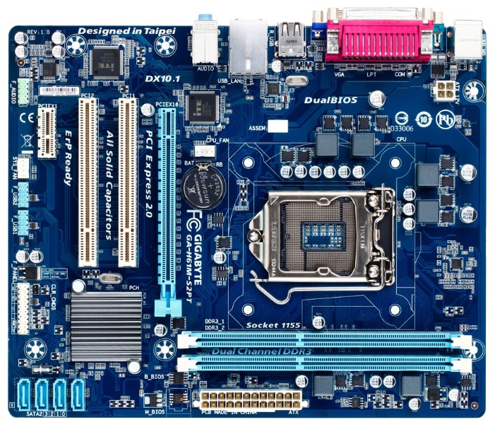 1xPCI-E x16, 9 USB, выход S/PDIF, 1xCOM, D-Sub, DVI, HDMI, Ethernet, LPT