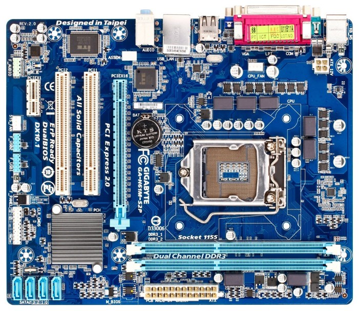 1xPCI-E x16, 2xPCI-E x1, 3xPCI, 8 USB, выход S/PDIF, 1xCOM, Ethernet, LPT
