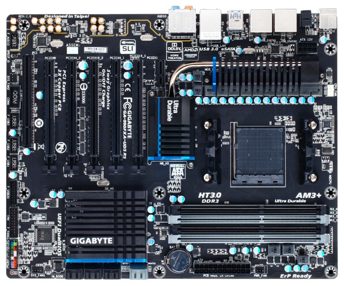 5xPCI-E x16, 1xPCI-E x1, 1xPCI, 18 USB, выход S/PDIF, 1xCOM, 2xeSATA, Ethernet
